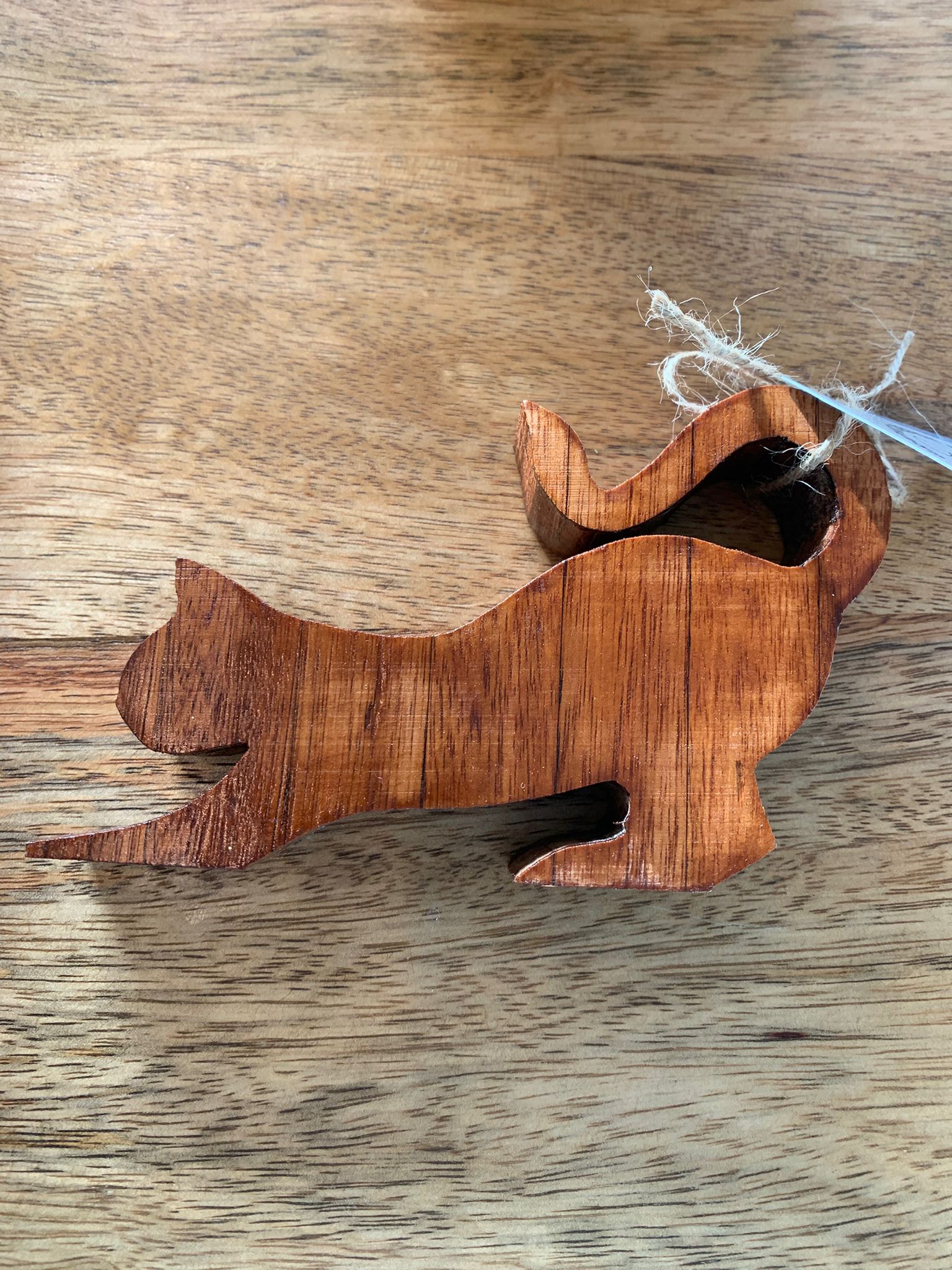 Deze kat van gerecycleerd hout is voor een deurstop